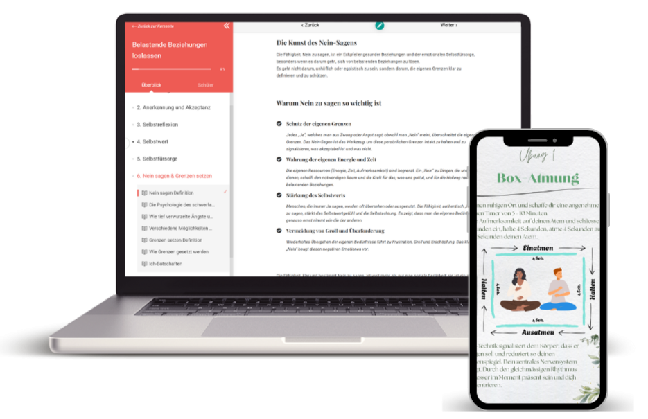Nutze meinen Kurs um deinen Horizont zu erweitern und dich selbst besser zu verstehen und auch liebevoller zu spüren. Meine verschiedenen Übungen helfen dir dabei dich langfristig in Beziehungen neu zu positionieren und dabei verbunden mit deiner inneren Gefühlswelt zu bleiben.